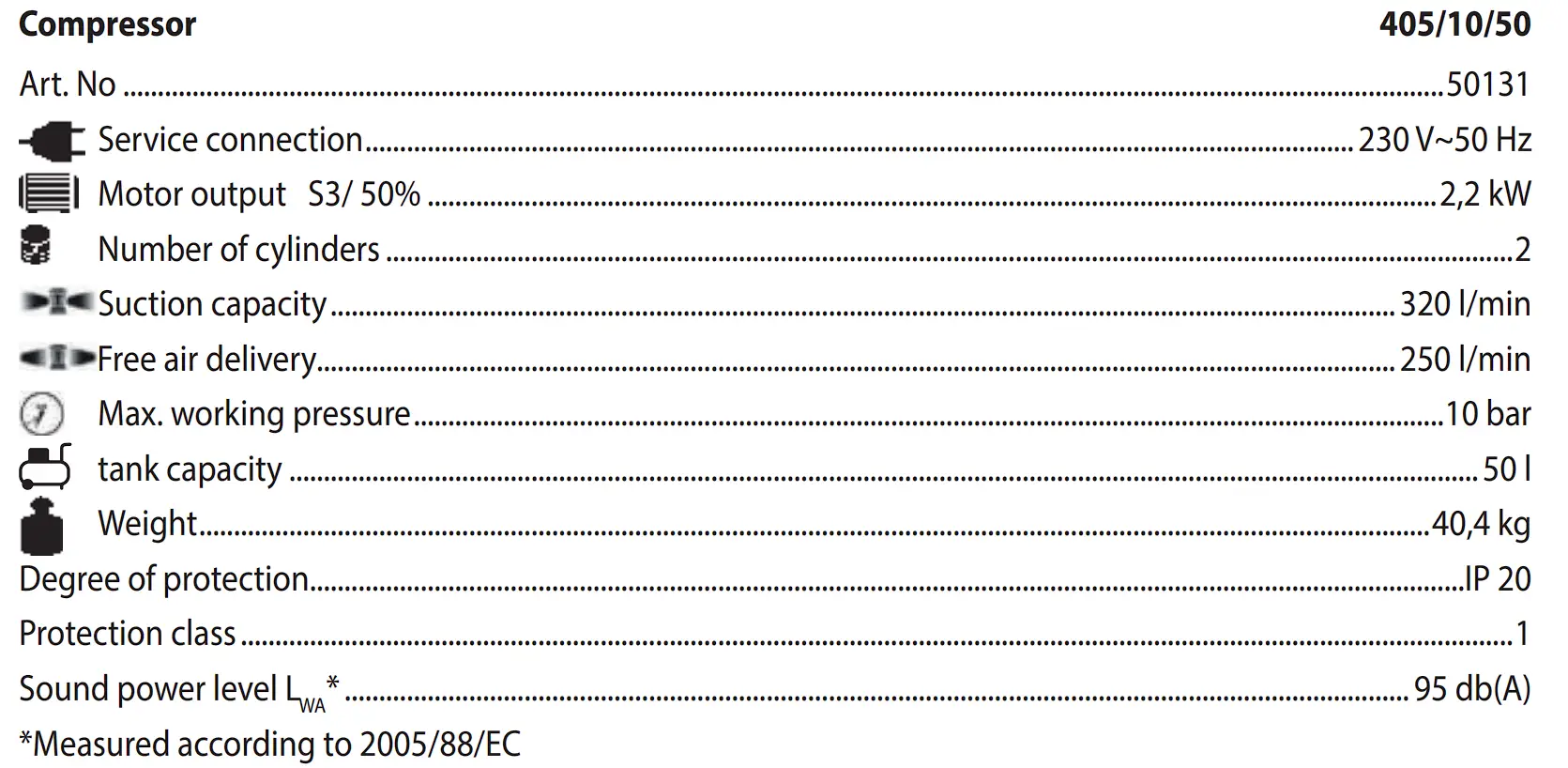 The compressor can only be used for the production of compressed air to be used at home and by handymen. Respecting technical data and safety precautions.