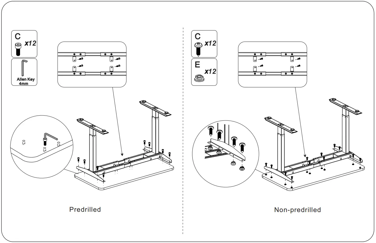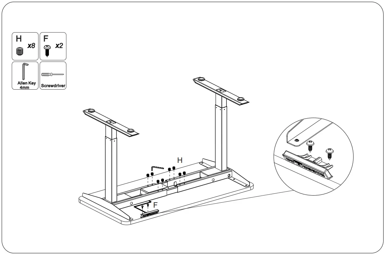 STEP 8Firmly secure the Crossbar with Screws (A) and attach the Keypad with Screws (F) to the tabletop.