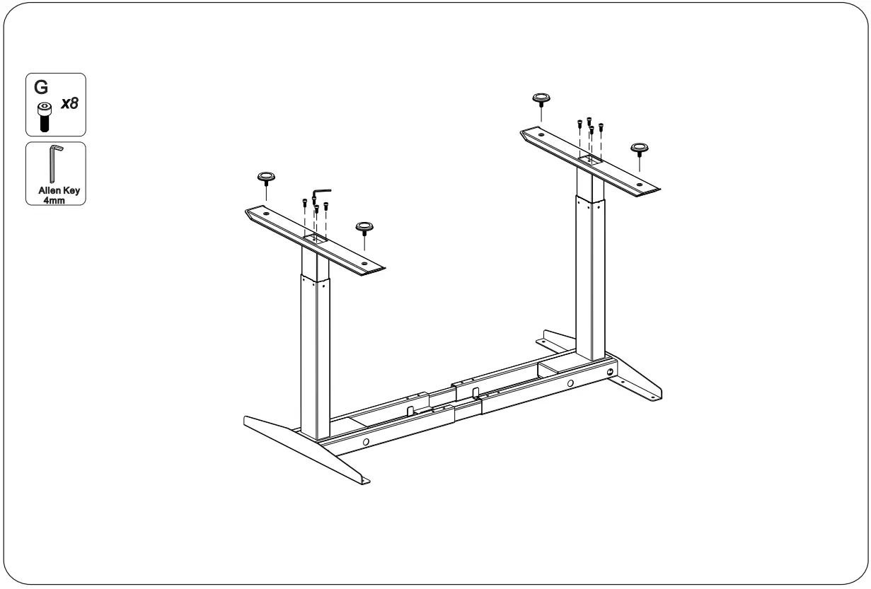 Insert one of the Crossbar Ends into the one of the Lifting Columns and secure with screws. Repeat the same step for the other Lifting Column.