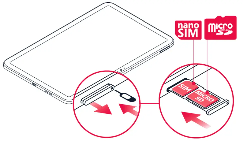 - Put the nano-SIM in the SIM slot on the tray with the contact area face down.