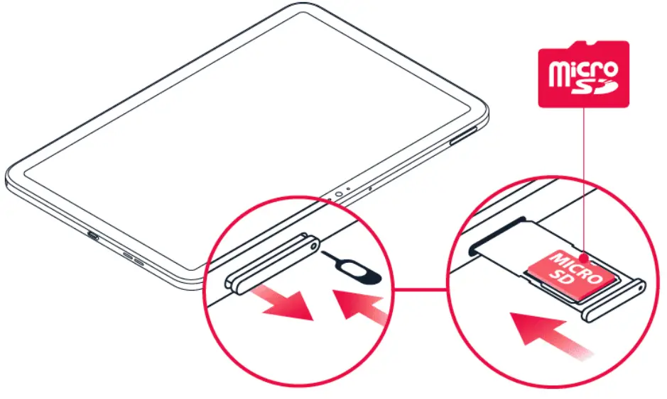 - Open the memory card tray: push the tray opener pin into the tray hole and slide the tray out.