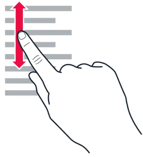 Slide your finger quickly in a flicking motion up or down the screen and lift your finger. To stop the scrolling, tap the screen.