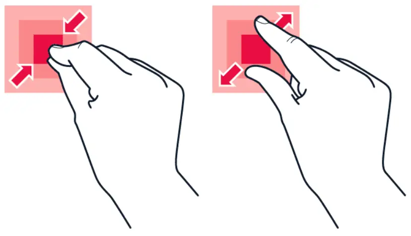 Place 2 fingers on an item, such as a map, photo, or web page, and slide your fingers apart or together.
