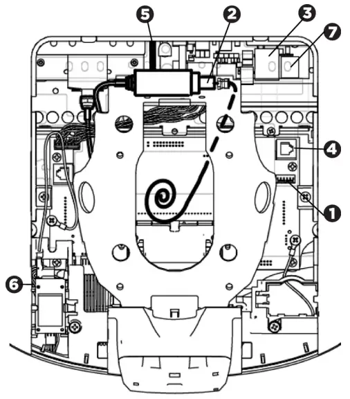 - Connect the cables as shown below. DO NOT attempt to route any cables through other openings or through the steel channel above the mount.