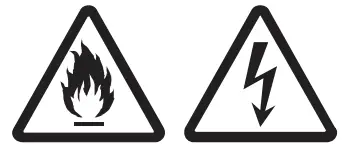![]() | Risk of fire | ![]() | rated power input, a.c. |