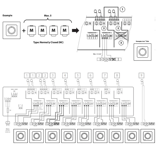 - Don’t connect a thermostat to the channel which you took the additional outputs from!