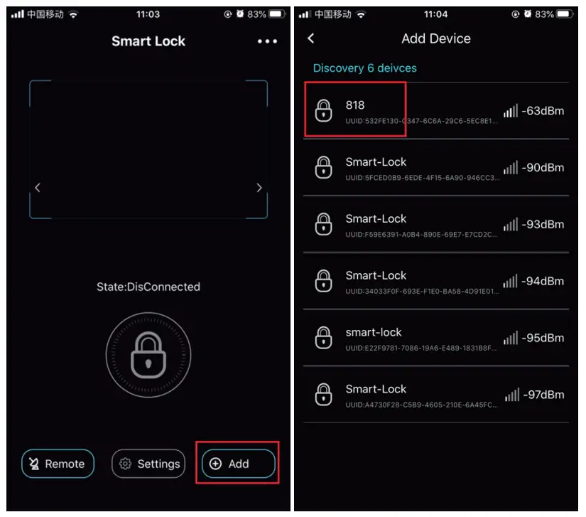 Step 3. Open App “SmartLock-Gold”→Click “Add”→Find the Lock