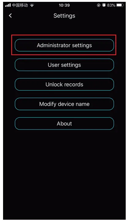 Step 3. Click the lock icon to connect the lock→Settings→Enter the admin password(Original admin password is 666666.)→Click “OK”.