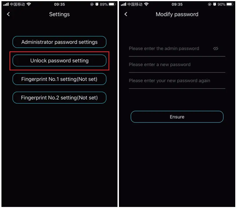 Step 3. Click “Unlock password setting” to set unlock the password.
