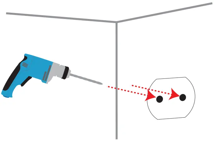 Use a 8 mm drill bit to drill two 25 mm deep holes as indicated on the alignment sticker.