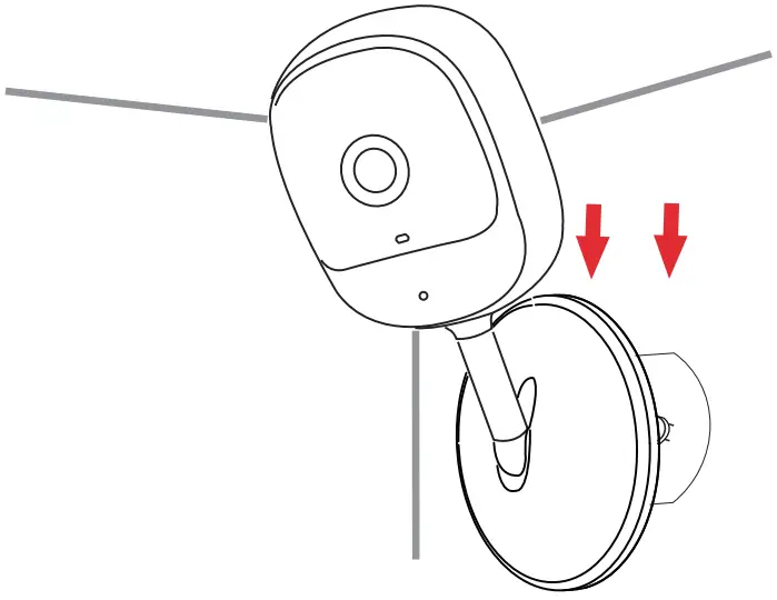 Align the mounting holes on the bottom of the camera with the screws. Slide the camera down to lock it into place.