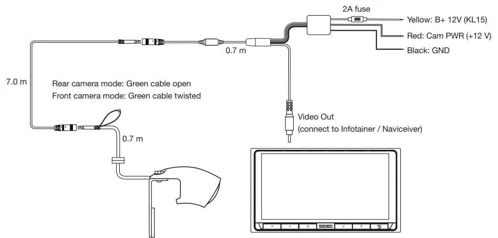 - Separable 3-part system cable, with cable lengths of 0.7m + 7.0m + 0.7m