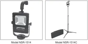 CAUTION: BECAUSE THE NSR-1514 HAS A MAGNETIC BASE, IT IS LIKELY THAT IT WILL BE PLACED IN AN ELEVATED POSITION ABOVE THE GROUND. THEREFORE CAUTION SHOULD BE USED TO BE CERTAIN THAT THE MAGNET IS SECURELY ATTACHED TO THE METAL SURFACE BEFORE RELEASING THE LIGHT. IT IS ALSO ADVISED THAT EXTRA CARE BE TAKEN WHEN ADJUSTING OR MOVING THE CORD SO THAT THE WORK LIGHT DOES NOT COME LOOSE AND FALL TO THE GROUND.