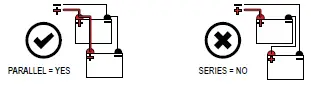 - Do not connect multiple batteries in series. Parallel connection is permitted.