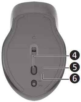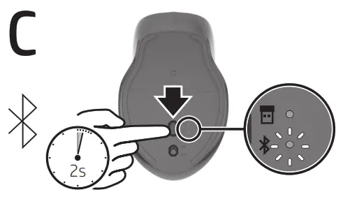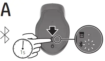 Solid (5 s): The mouse and receiver are connected to the same computer. - Bluetooth pairing light Two blinks and a pause (180 s):