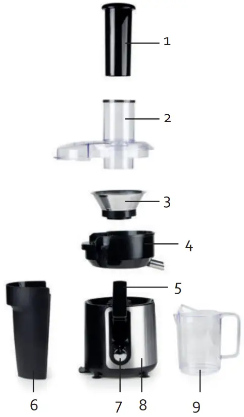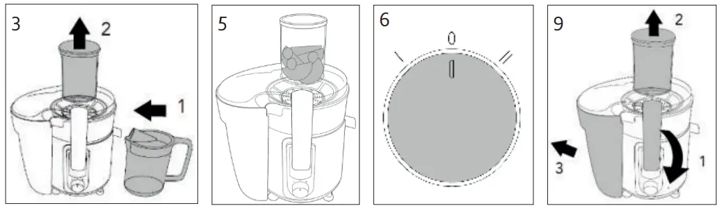 - Do not operate the juicer for more than 5 min at a time and let it cool down sufficiently between 2 uses.