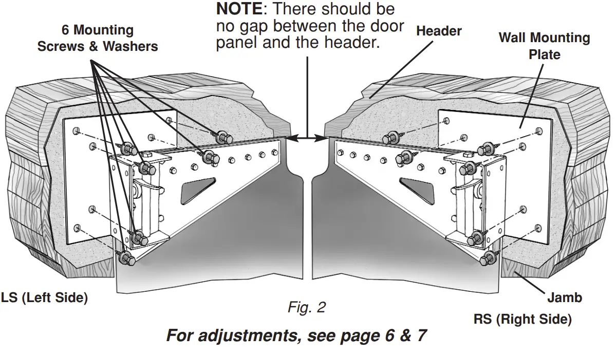 Finally, put each bracket/panel in place and screw down tightly to the door jamb using the supplied 1/4” x 11/2” screws and washers. (See Fig. 6 )