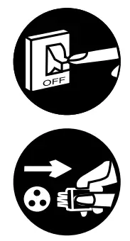 | Prevent electric shock by switching off the power supply and unplug: -Before cleaning or servicing, -When extended non-use, or -During abnormally strong lightning activity. |