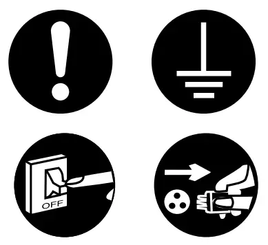 Stop using the product if any abnormality/failure occurs and disconnect the power plug or turn off the power switch and breaker. (Risk of smoke/fi re/electric shock) Examples of abnormality/failure- The ELCB trips frequently.