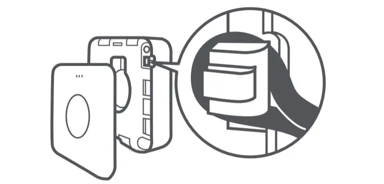 b.Using the adhesive sticker: Remove the release liner from one side of the adhesive sticker to stick it on the back of the monitor, then remove the release liner from the other side to stick it at the desired place on the wall.c.Hanging: Remove the back cover of the monitor, and lead the lanyard’s loop through the hole and around the hook. Reinstall the back cover, then hang the monitor.