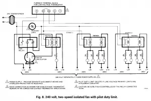 The relay or contactor can be used on furnaces using line voltage or pilot duty limits in 240 Vac and 120/240 Vac isolated fan and 240 Vac combination rated wiring systems.