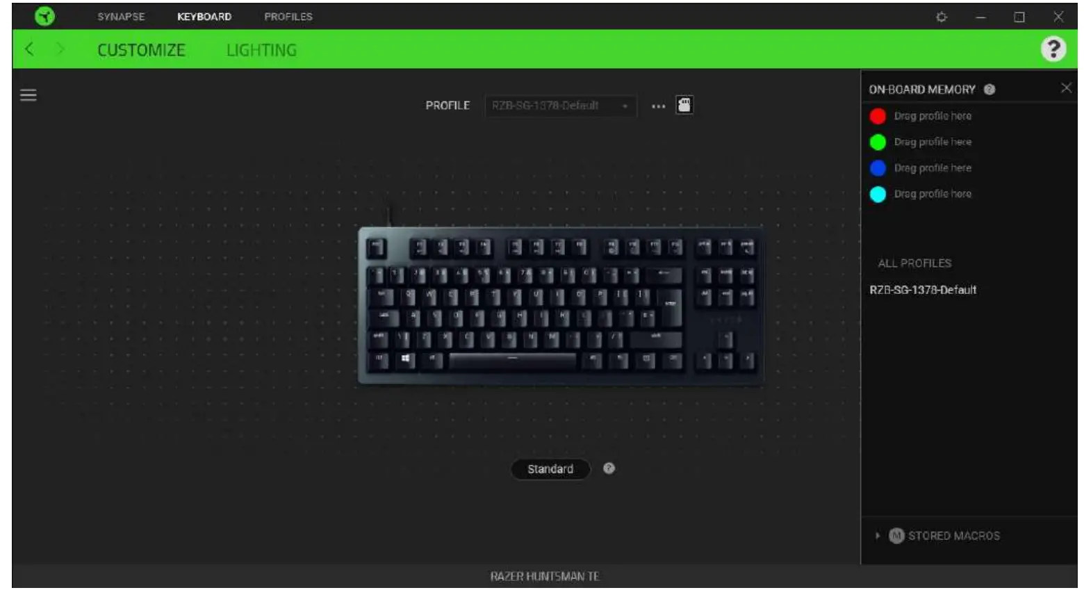 - Use the Razer Synapse* app to customize its lighting and even create various profiles suited for different playstyles. Up to 5 of these profiles can be stored on your keyboard from the Razer Synapse app, allowing you to use these profiles even on systems without the app installed. Learn more about storing profiles