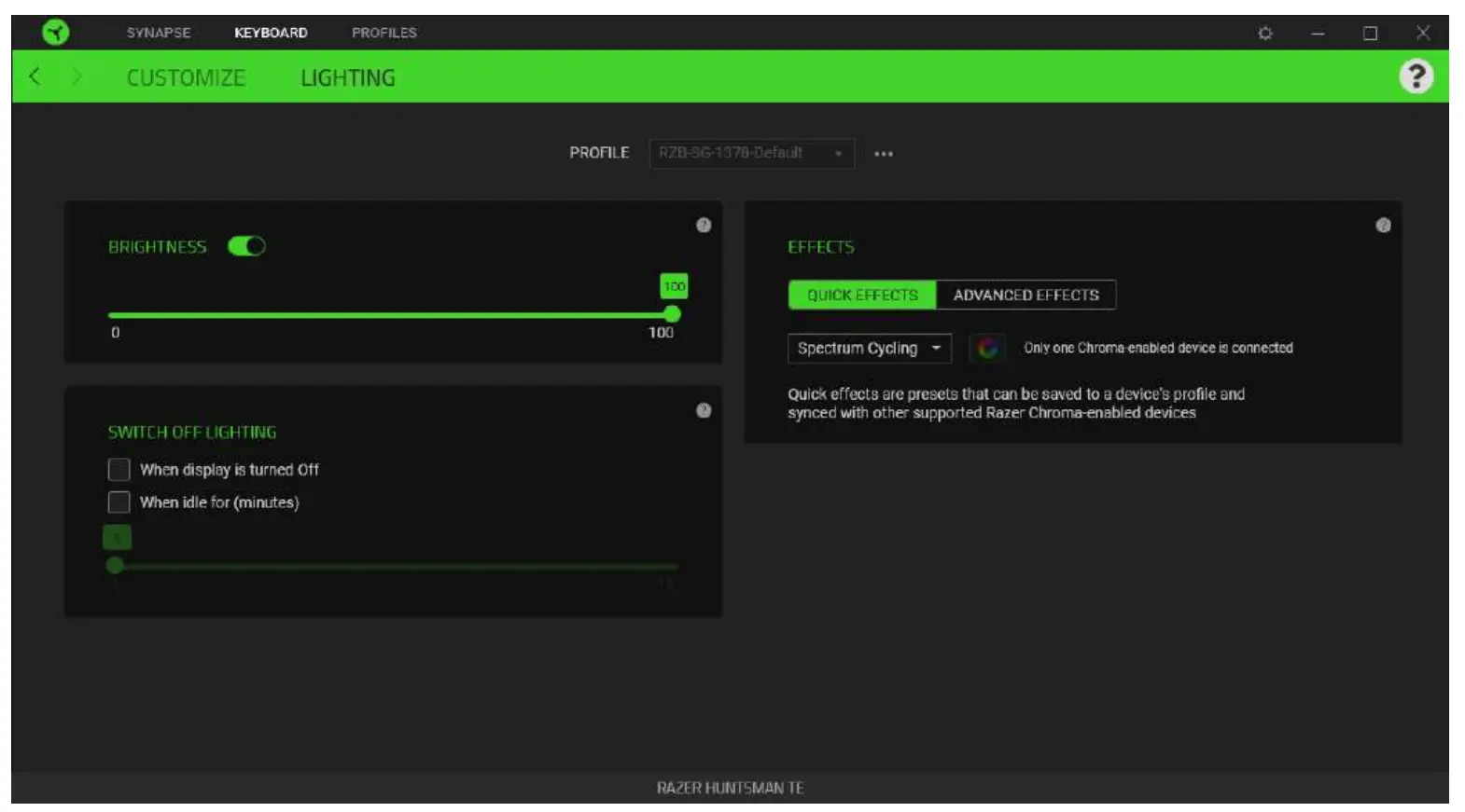 This is a power saving tool which allows you to disable your device’s lighting in response to your system’s display turning off and/or automatically power down when your Razer Huntsman TE has been idle for a set amount of time.