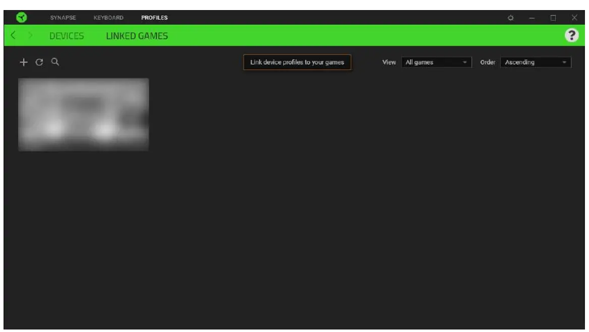 The Linked Games subtab gives you the flexibility to add games, view peripherals that are linked to games, or search for added games. You can also sort games based on alphabetical order, last played, or most played. Added games will still be listed here even if it is not linked to a Razer device.