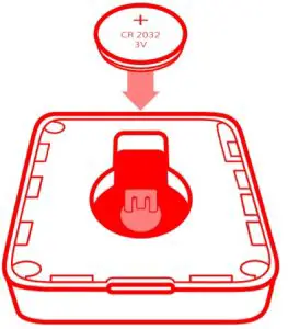 Remove the cover from the cover opening of the monitor, and place a CR2032 battery with the positive (+) side facing upwards, then reinstall the cover.