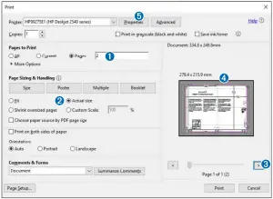 - Select Actual Size ➋ for Page Sizing & Handling.