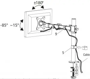 - Please check all adjustable components regularly to ensure none of them have loosened. This product is designed to be installed on a desk. Before installing, ensure that the desk will support the combined weight of the mount and screen (approximate maximum of 10Kg).