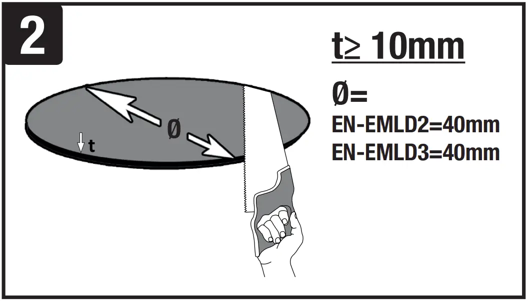 - LED module may also be mounted without the downlight in a 20mm hole, but invertor and battery only can be installed from above.