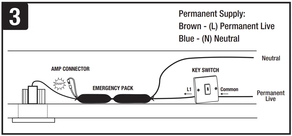 - To test in emergency mode operate the installation emergency keyswitch which will switch off the permanent mains supply to the emergency lighting circuit.