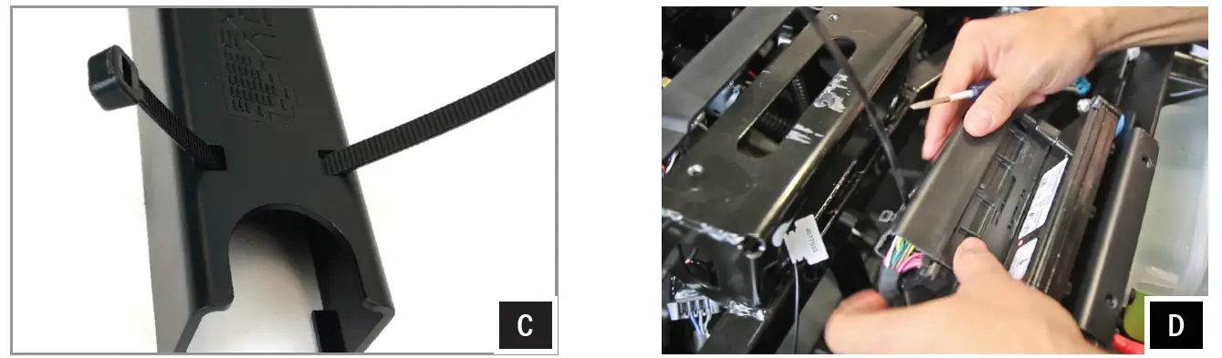 - Connect the B-H1149 cable to the speaker pod and zip tie all cables to the frame.
