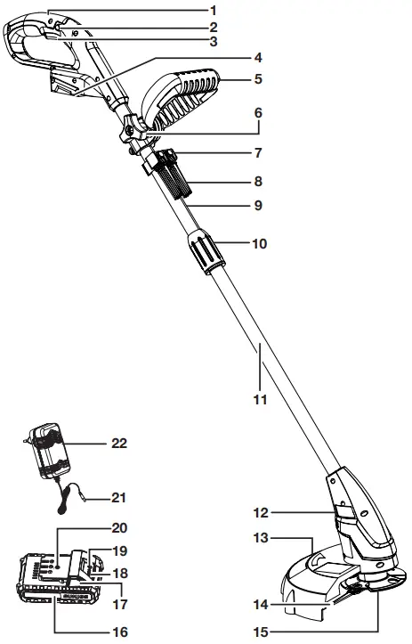 - Stop the unit and remove the battery from the battery compartment before changing the trimmer blade.