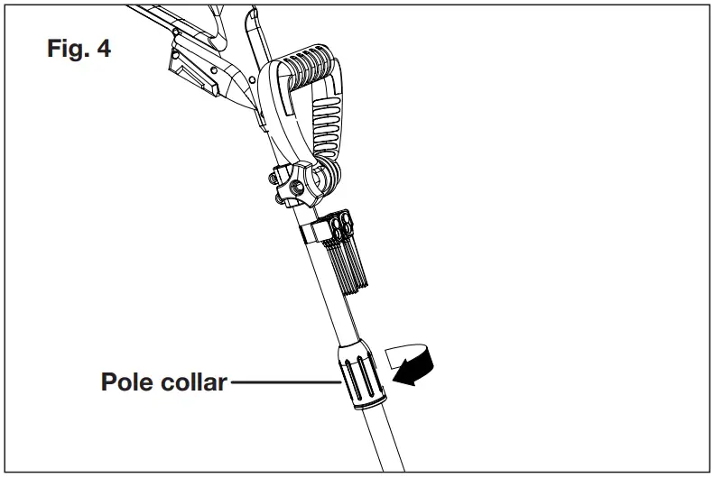 - Adjust the position of the auxiliary handle as needed by sliding it along the upper pole (Fig. 9).