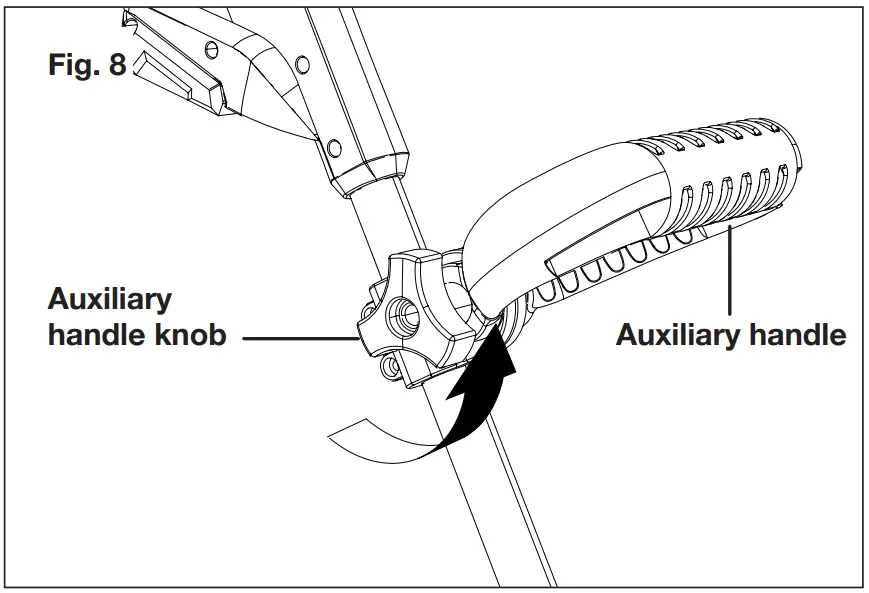 - Rotate the auxiliary handle knob counterclockwise to loosen the auxiliary handle (Fig. 8).