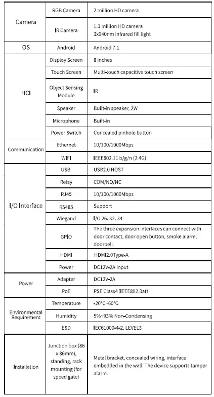 You can install SensePass Pro via three methods: Wall-mounted [junction box (86 x 86mm)], standing or rack mounting (for speed gate).