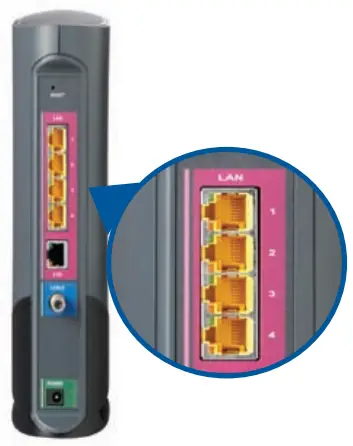 B Connect an Ethernet cable (not included) to any Ethernet port on the rear of your Wi-Fi cable modem and the Ethernet port on your PC or laptop.