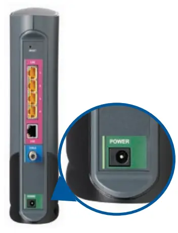C Connect the power adapter to the Power port on the rear of your Wi-Fi cable modem, then plug it into an electrical wall outlet that is not controlled by a wall switch to power on your Wi-Fi cable modem.