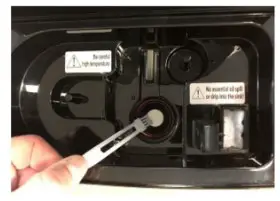- The inner ultrasonic transducer is highly sensitive. Do not touch it with bare fingers or scrape it with metal tools, or it will reduce mist output. When cleaning this area please use a small cleaning brush, cotton swab or tooth brush. Do not use hot water as it may damage the misting parts.
