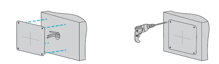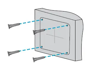 - Locate the positions of the holes by pasting the installation position map on the wall and aligning the cross center to the hole in the wall.