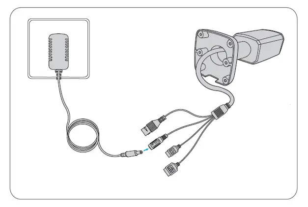 Use an Ethernet cable to connect the network interface of the camera to the PoE port on a PoE device, such as a PoE switch.Use the power adapter (purchased separately) to connect the power interface of the camera to the local power source.