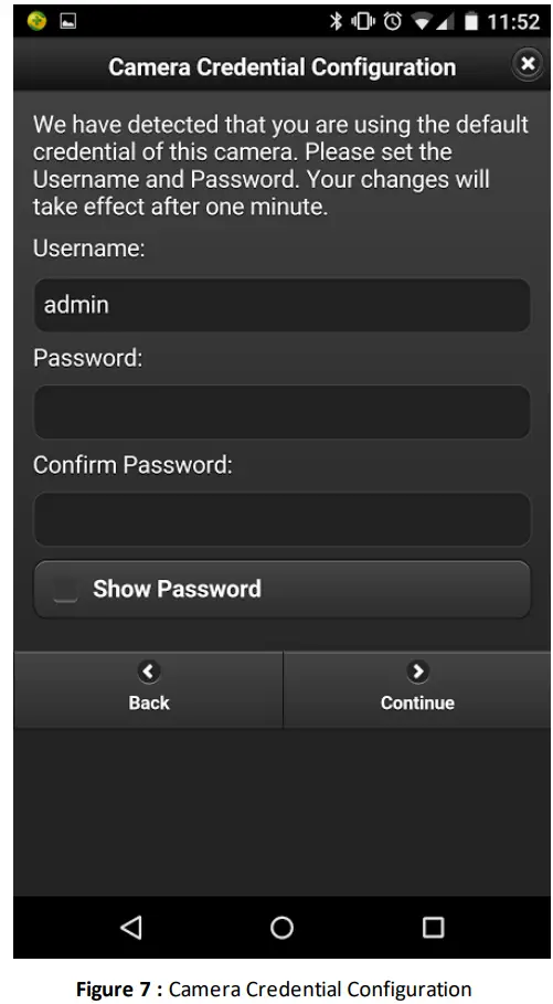 After scanning the QR code or entering the device serial number, the user will be prompted for the camera’s login credentials. Default username and password for 3xLOGIC VISIX All-in-One cameras is admin/ admin, respectively (Figure 2-6).