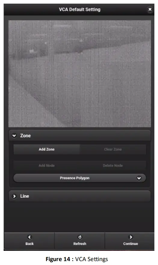 For VISIX thermal cameras (VX-VT-35 / 56), the user can create a VCA rule(s) after confirming the camera’s field of vision (step 8 of the previous section). Proceed through the following subsections for details on VCA Zone and VCA
