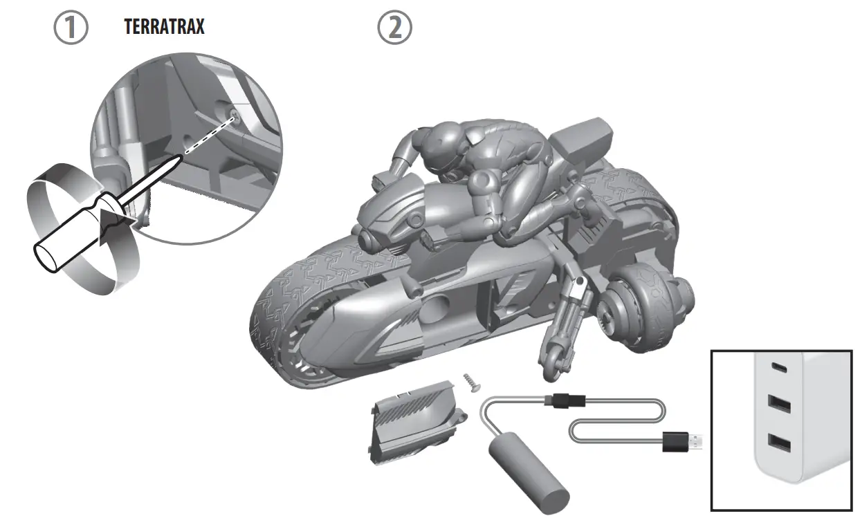 - Charging unit to be used with the toy should be regularly examined for potential hazard, such as damage to the cable or cord, plug, enclosure of other parts and that in the event of such damage; the toy must not be used until that damage had been properly removed.