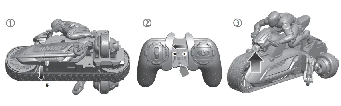 - Turn ON TERRATRAX and Remote Control. Wait 1-2 seconds for them to pair. Power indicator on Remote Control will stop blinking when paired.