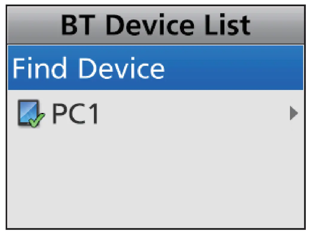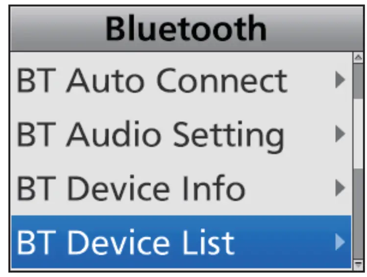 - Push [Up] or [Down] to select “BT Device List,” then push [OK].