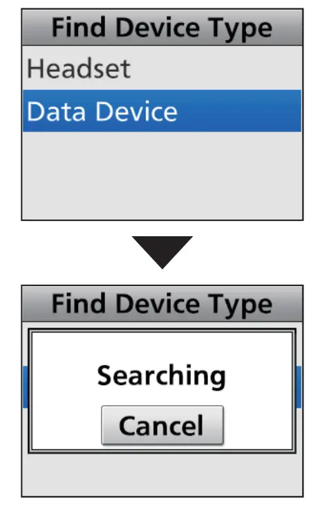 - Push [Up] or [Down] to select “Data Device,” then push [OK] to start searching.
