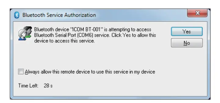 When the Serial Port Access Authorization dialog such as below is displayed on the PC screen, accept it.
